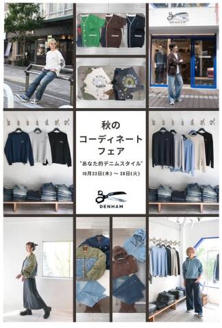 「あなた的デニムスタイルを探せ」はき続けて育てる生デニム。ヴィンテージ感を楽しむジャパンデニム。仕事からプライベートまでのオールラウンダー。デンハムのレイザーデニム。秋一番にあなた的デニムを選び、トップスのコーデを決めるオシャレが楽しい季節をデンハム大分店から始めましょう。