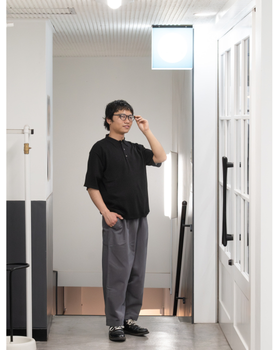 ボトムスには、おじさん可愛いパンツを合わせています。レディースがきても、適度なゆるさが可愛く、もちろんメンズがきてもサマになるパンツ。もちろん着心地抜群。ぜひ、店頭にてご覧ください。