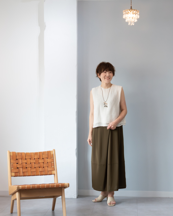 涼しげでナチュラルな雰囲気を持ちながらも動きのあるシルエットでおしゃれ感を演出。