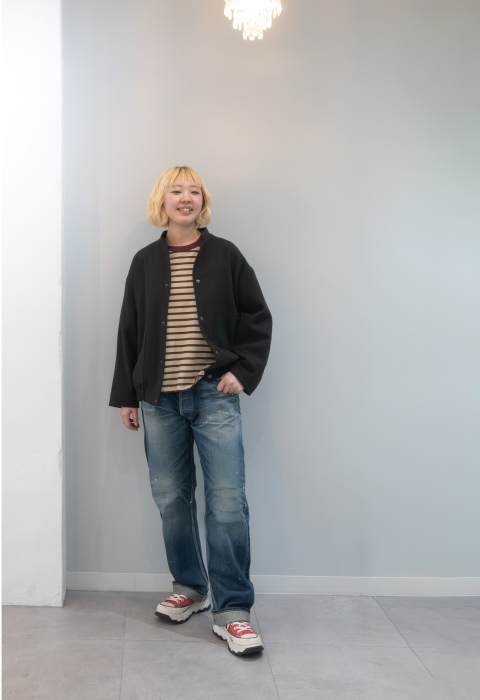 今季のトレンドカラー、ブラウン。落ち着いた大人の雰囲気と抜け感を思わせるブラウンなら、デニムスタイルがもっと素敵になる!ブラウンの中でも合わせやすいこげ茶系のブラウンブルゾンは、100年以上の歴史を持つ老舗企業の圧縮フラノで、裏地はコットン素材の軽い着心地。職人技の「JAPAN DENIM」にピッタリくる。どこにでも無い配色のボーダーで、オンリーワンのスタイルに。
