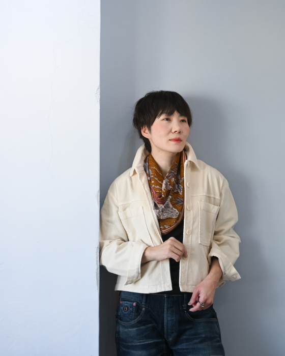 トップスで取り入れるのが、「周りと差のつく」オシャレ。デンハムの代表的アイテム、クロスバックデニムで後ろスタイルも魅せる。