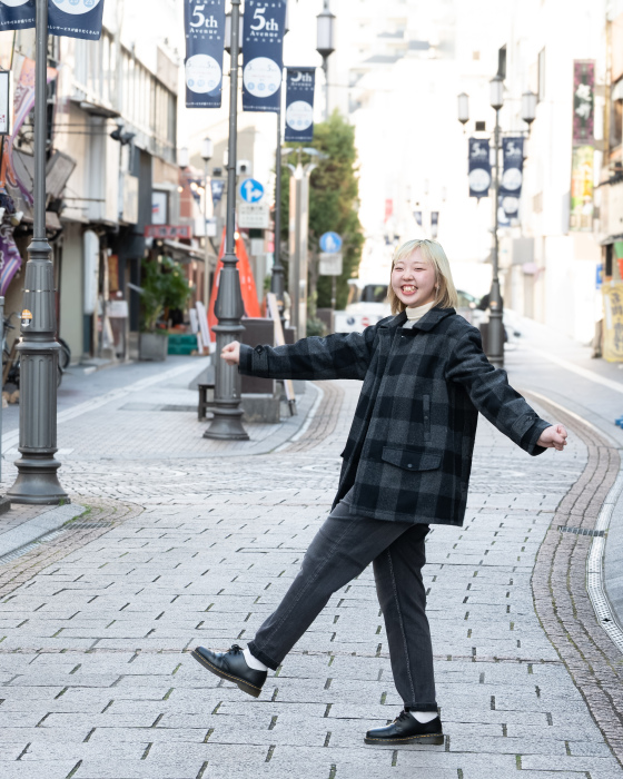 オリーブ×オレンジカラーのジャケット。寒い日はインナーにスウェットを着込んで。今日はゆったりストレートデニムでコーディネート。ラフなのに目が離せない「デンハムブランド」