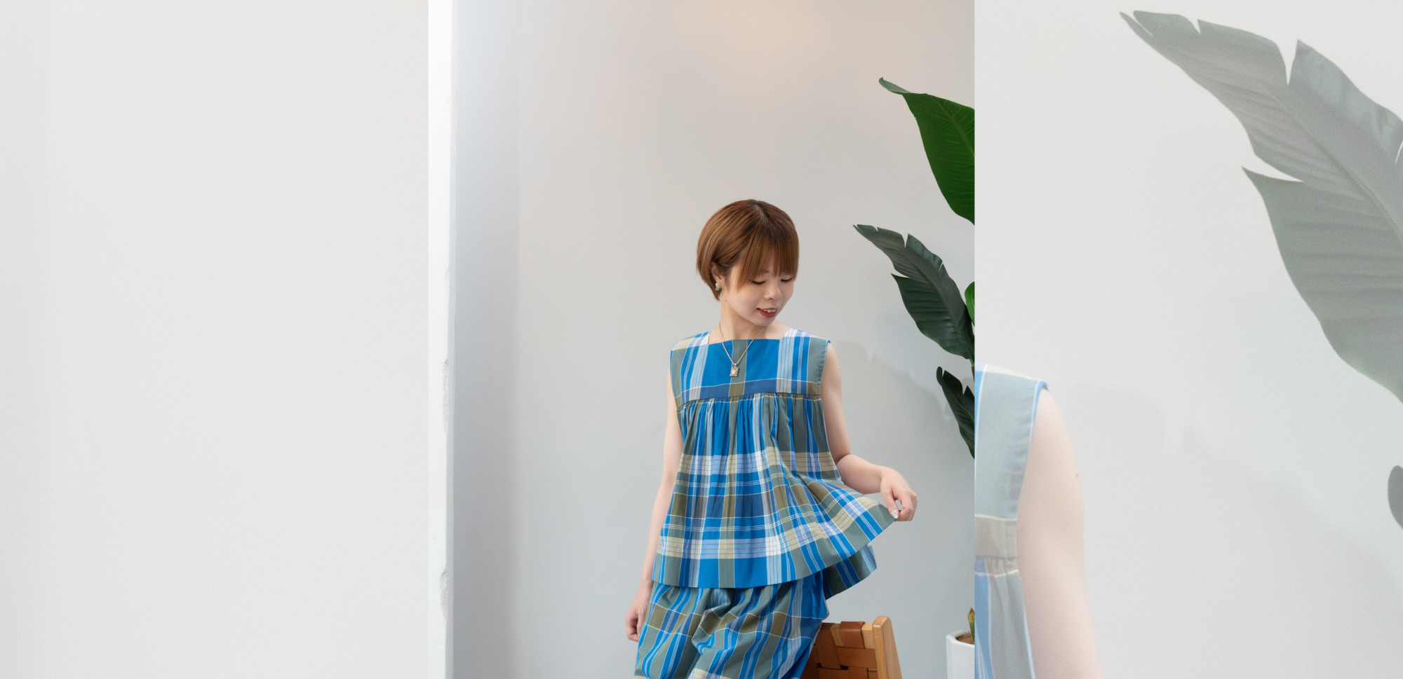 脇が開いていて、リボンで留めることもできるデザイン。身幅の広いアイテムや、タンクトップに合わせてもgood!ストライプは、ハリのある薄手のコットンブロード生地。アイボリーは、リネンのナチュラルな質感が魅力の生地。ぜひ、店頭にてご覧ください。