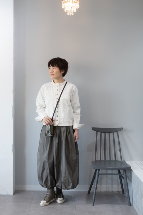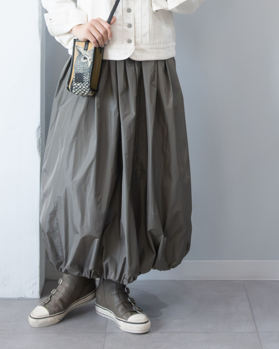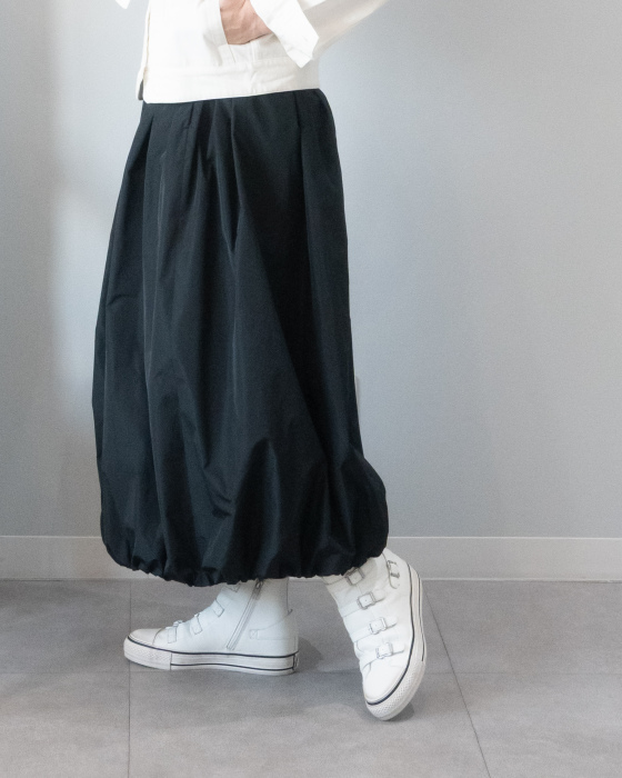 大人なバルーンスカートで始める春。ボリュームを抑えたシルエットで甘さよりもかっこよさが出る一枚。