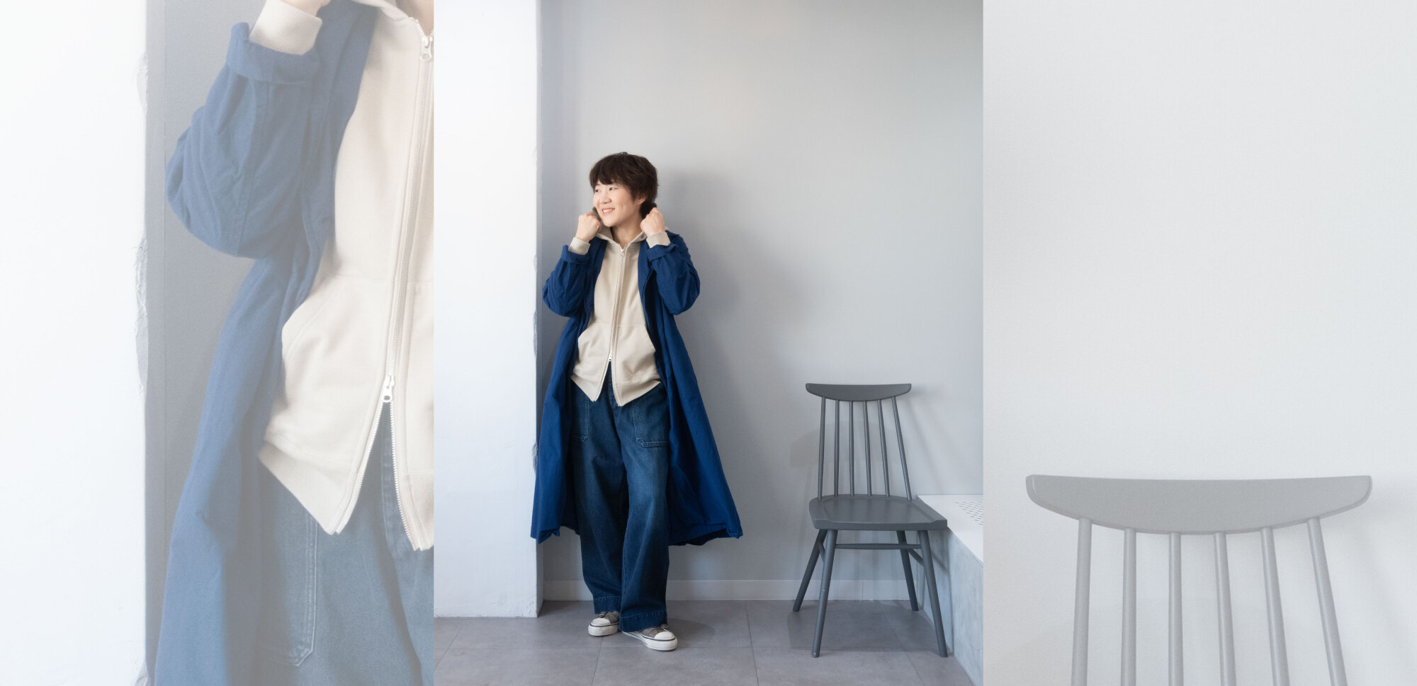 春の冷たい風をしっかり防いでくれる、二重コートの安心感。Veritecoeur定番アイテムならではの安定感も嬉しい。