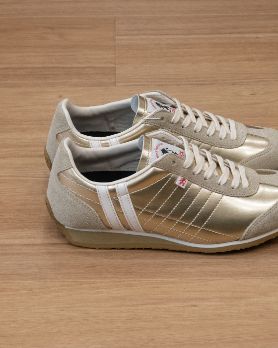 デニムや綿パンのカジュアルダウンから、スカートやスラックスの上品コーデまで。足元に洗練を添える万能スニーカー。一般的に「硬い」印象のエナメルながら、足入れは驚くほどソフト。