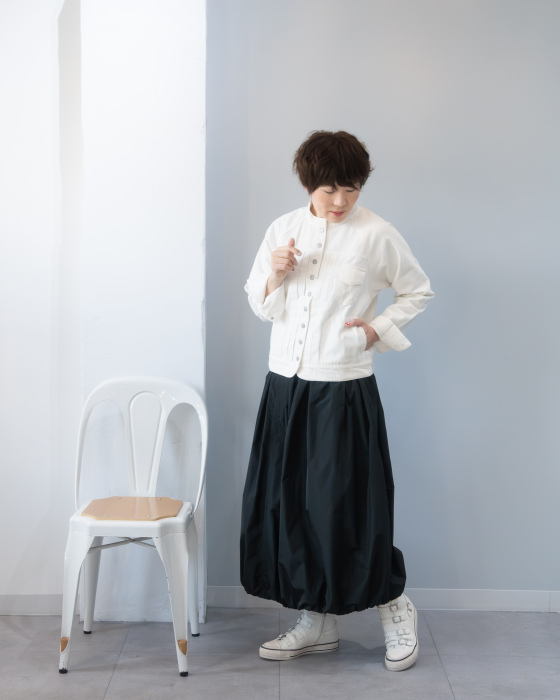 季節の変わり目、まだまだ寒い時は、モノトーンコーデ。Iラインの大人バルーンスカートでスッキリ見え&鮮度アップ。広がらない適度なボリューム感。パンツ感覚で楽しめる。皆様、遊びにいらしてくださいませ。