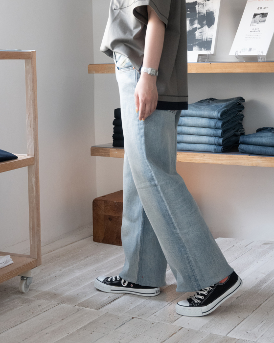 ゆとりを持たせたワイドストレートデニム。ボックスシルエットのTシャツと合わせても、スッキリ着こなせてどこかおしゃれ。都会的に見える今日の私。